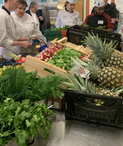 Mme Carole LE BAGOUSSE, présidente de l’organisation mondiale de la gastronomie, était également membre du jury. Chaque équipe a réalisé une entrée et un plat ou un plat et un dessert à partir de légumes et fruits locaux de saison, en utilisant le maximum du produit. Ils ont été jugés sur la qualité de leurs mets et la gestion des déchets.